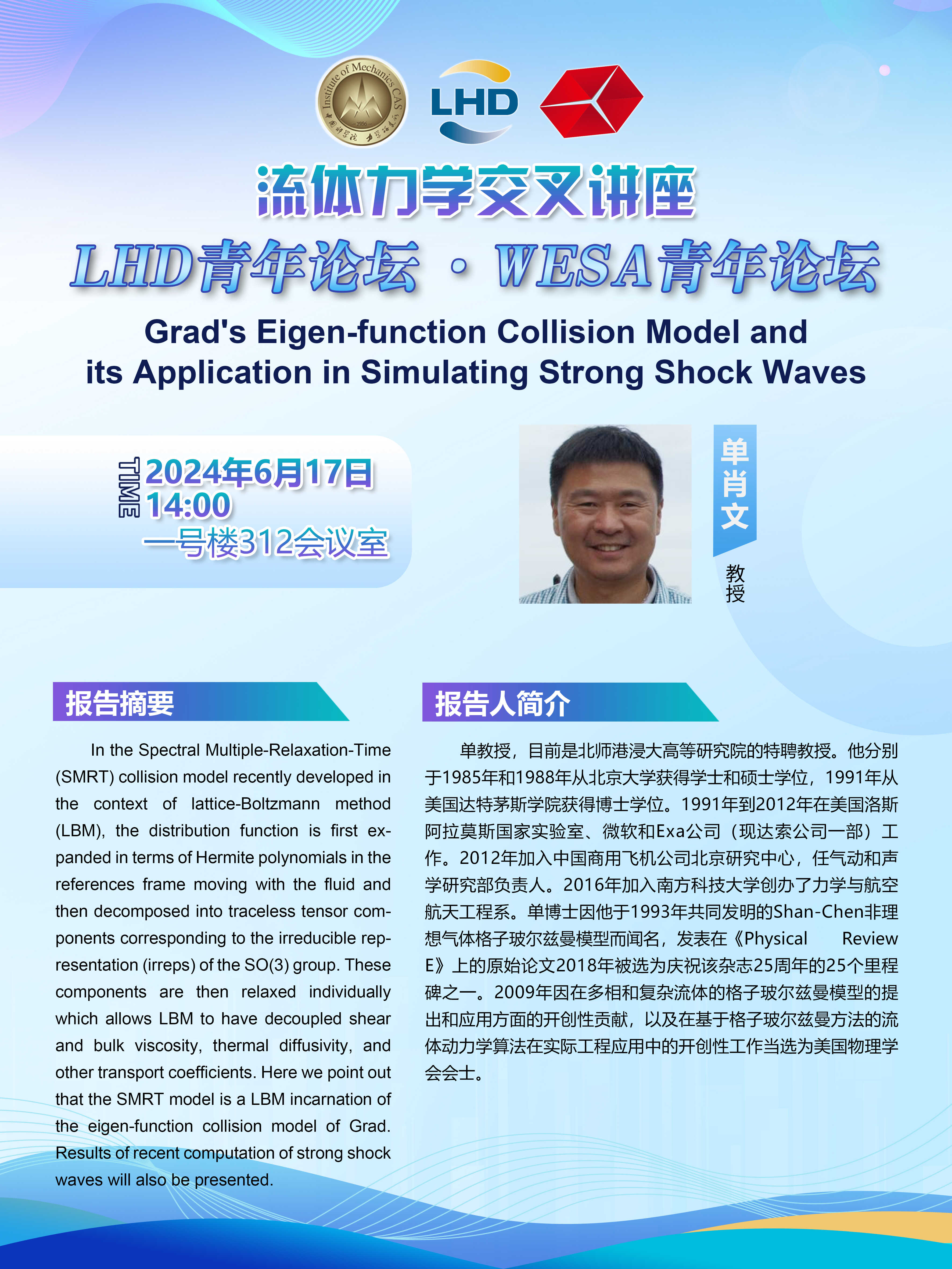 (LHD流体力学交叉讲座 6月17日 14:00 一号楼312会议室)Grad's Eigen-function Collision Model and its Application in Simulating Strong Shock Waves