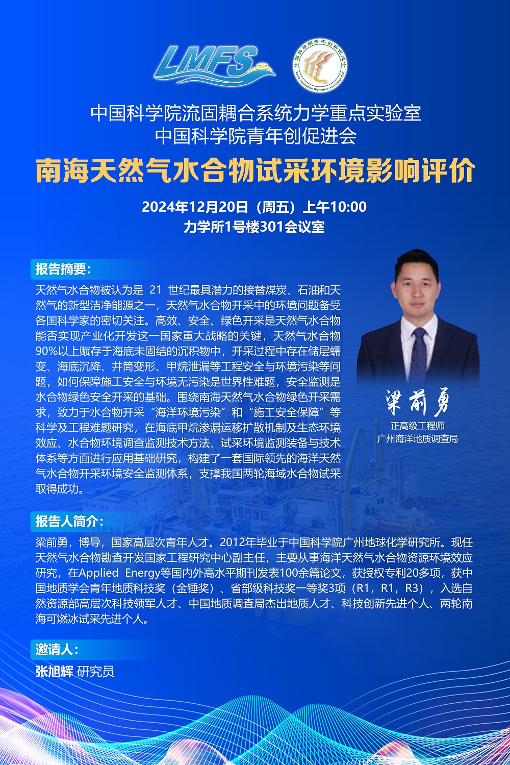 (LMFS 12月20日 10:00 1号楼301会议室)南海天然气水合物试采环境影响评价