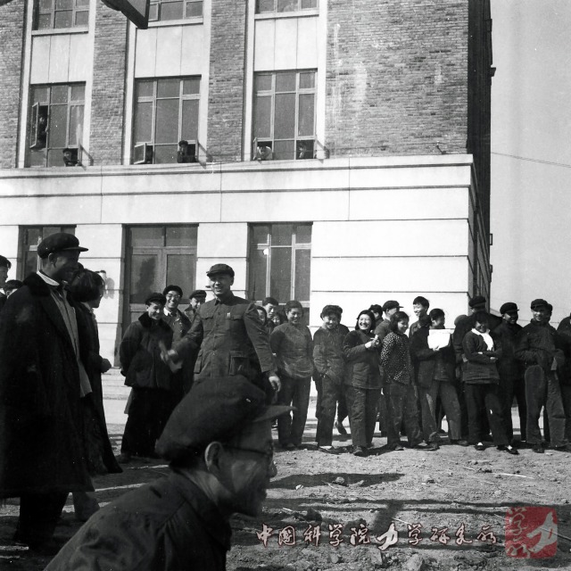1960年钱学森等观看郑哲敏科研团队在力学所院内的小型爆炸试验