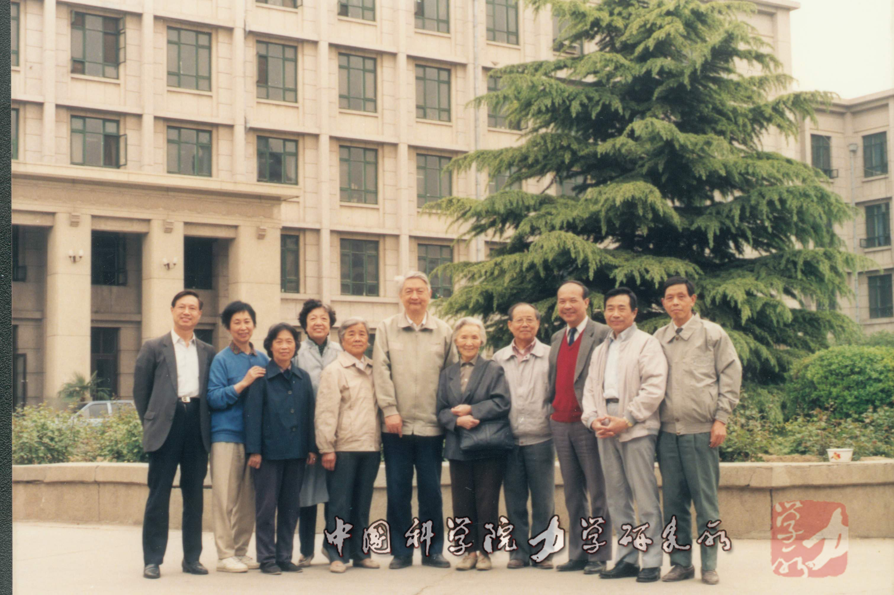 1991年郑哲敏李佩等一直关心早期力学所怀柔分部工作的老同志,右起陈良,谈庆明,何鼓声,郑哲敏,李佩,朱兆祥,张可文,金和,陈丽吟,石光漪,陈融英