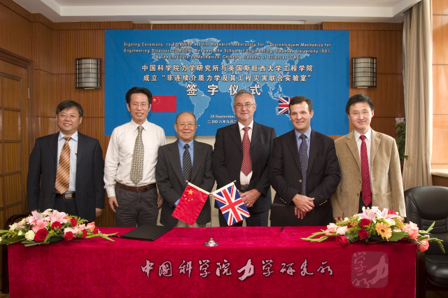 2008年与英国Swansea创建联合实验室合影,左起李世海,樊菁,郑哲敏等