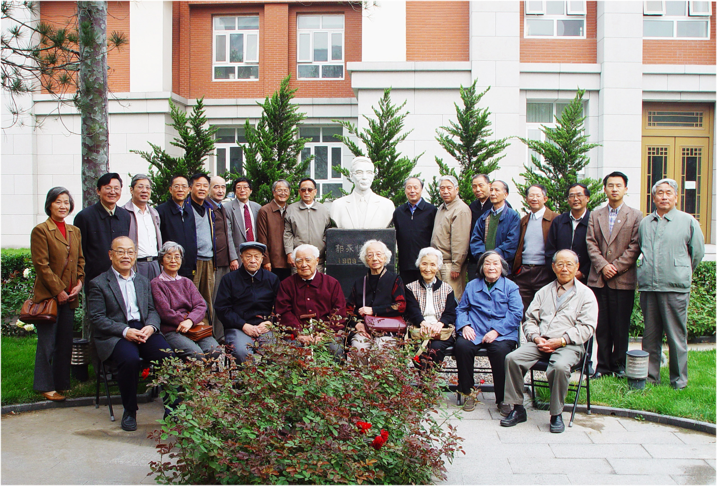 吴承康(左1)与力学所老研究生和指导老师们合影