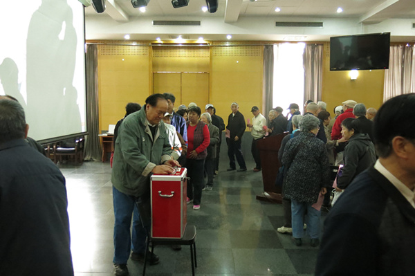 在大会选举计票阶段,厉文萍同志带领在座的党员学习了部分《中国共产党章程》内容,并布置了离退休支部关于“两学一做”的后续学习安排。