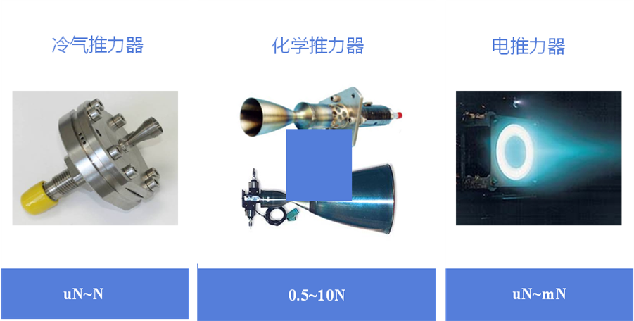 目前常用的有三种小推力器,一种是所谓的冷气推力器,它实际上非常简单,就是一个高压气瓶里面装满了高压的气体,当打开一个阀门气体排出的时候,就能产生推力,这个推力的作用就类似我们吹一口气。那么另外一种就是化学推力器,它的工作原理就是利用化学物质燃烧产生的高温高压的气体喷出,产生推力。还有一种是电推力器,这是相对比较复杂的一种推力器,它实际上是通过磁场加速电离的空气来产生推力。