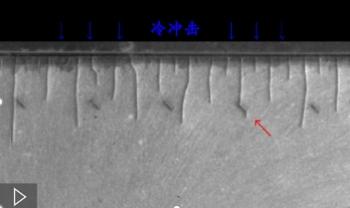 而陶瓷表面受到热冲击时,裂纹则从内部预置缺陷处开始产生,向两侧扩展(图10)。