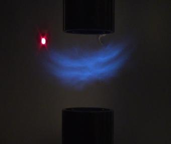 这里再对比一下微重力环境和常重力环境下的预混气体对冲火焰的不同形态,图5和图6分别给出两种条件下的火焰图像。在地面实验中,常重力下的对冲预混火焰边缘向上卷曲、翘起。相比而言,微重力环境下对冲预混火焰更为平坦、对称。两种环境下的这种差异,在实际工程中有着应用的。仅就燃烧而言,当太空环境中发生火灾时,不能再采取与地面火灾相同的处理方式。