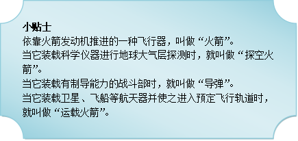 其实,在古代中国,“火箭”最开始是指捆绑着火把的弓箭。在公元228年的三国时期魏国蜀国陈仓交战时就使用了这种火箭。到了北宋出现了“火药箭”。它是用纸糊成筒,把火药装在筒里压实,绑在箭杆上,仍然用弓发射出去。由于引爆时声响很大,可以起到恐吓敌人的作用从南宋开始,火箭兵器在战争中的应用有了很大发展,这个时期的火箭已经是利用火药燃气的反作用力来发射、推进箭矢了。咱们现代火箭的奥妙,就全藏在这里面的啦!