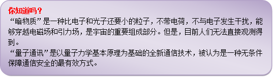 除此之外,还有一大类卫星是为了进行科学研究而发射的,它们携带着各种装备和仪器,穿行于大气层和外层空间,完成科学家设定的各种任务,并返回相应的信息,所以叫做科学实验卫星”。你问要进行什么样的科学实验吗?这范围可就非常的广泛啦!例如,“天文卫星”就是用来对太阳、月球、行星以致整个宇宙进行观测,还可以进行空间物理环境探测(像电离层、地磁场、宇宙线等等)。再如,“生物卫星”是研究空间环境条件下生物生命的现象,对象有微生物、植物、动物以及人类本身。还有一些卫星是为了试验新技术的,像2015年发射的“悟空号”就是为了中国科学院的科学家开展暗物质探测研究的,而2016年发射的“墨子号”则是为了中国科学院的科学家开展量子通讯研究的。