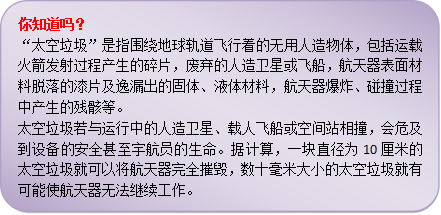 其实,这里提到的仅仅是和航天员生活有关的一点点事情。小朋友都会知道,航天员在太空里主要是工作,他们能开展的太空科研项目广,就要求空间站在轨飞行时间长并具有多种功能,这样才能保证太空科研工作的连续性和深入性。所以,和卫星、飞船相比,我们见到的空间站,都是体积大、结构复杂的大家伙。这里,还要提到空间站的另一个特点,就是它们都不会再返回地球,只是在太空接纳航天员进行实验,而把接送航天员(或者运输物质)的活儿交给能在天地间往返、还可以和空间站对接的载人(或货运)飞船或航天飞机去做。这样就可以简化空间站的结构,不必增加为保证回地安全所需要的设计,从而既能降低它们自身的工程设计难度,又可减少航天费用。如果空间站不能继续工作了,怎么办呢?自行销毁呗,就像“和平号”那样溅落在南太平洋里。