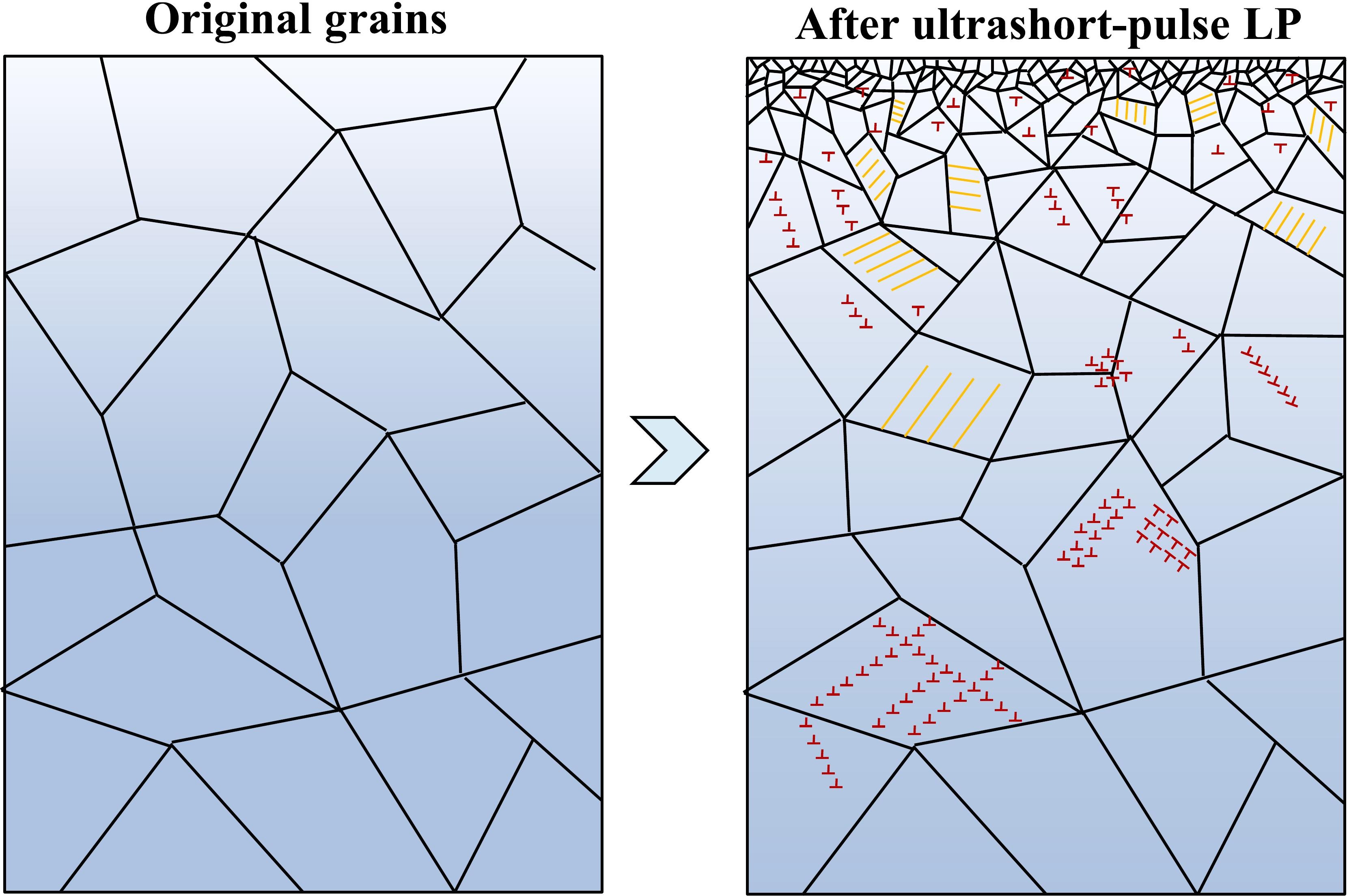 定制金属材料的微米和纳米结构,如细化和层状晶粒、高阶纳米线和位错结构,可有效改善其机械性能。因此,操纵微/纳米结构正在成为金属增强的一种关键技术方法。非线性力学国家重点实验室的彭庆研究员和华北电力大学的王鹏杰助理教授的联合研究团队在Ti-6Al-4V合金表面利用超短脉冲激光喷丸技术成功诱导形成了梯度微纳结构,这一成果为金属材料表面性能的优化提供了全新途径。