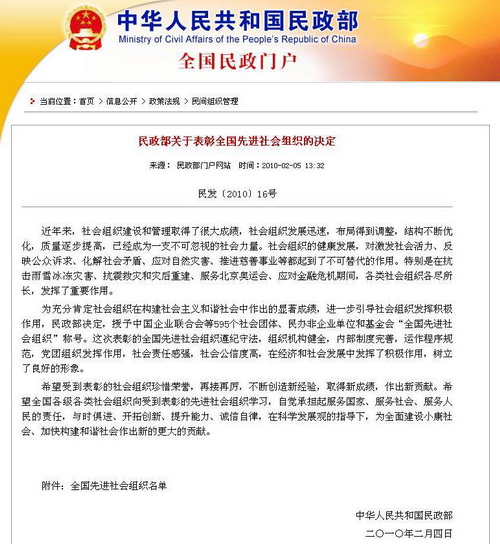 相关链接:民政部关于表彰全国先进社会组织的决定