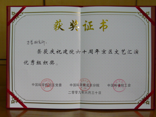 《人民不会忘记—献给郭永怀院士》在中科院京区院庆文艺汇演中获一等奖