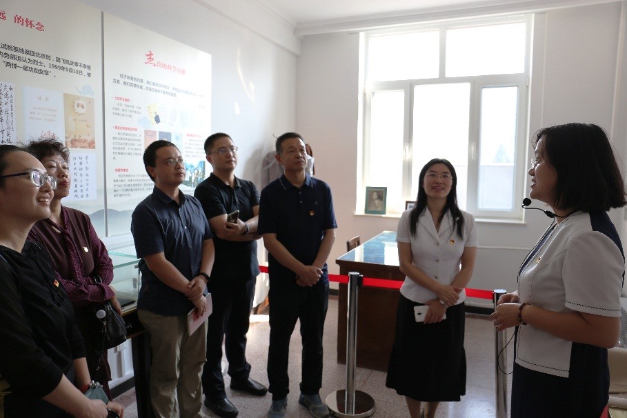 王振惠一行首先参观了高超声速推进实验室和超声速燃烧实验室,听取了高温气体动力学国家重点实验室范学军研究员和张启帆助理研究员对实验设备的介绍。随后,参观了中科院“人民科学家·强国奠基石”党员主题教育基地:瞻仰了钱学森与郭永怀塑像,参观了院士墙和钱学森、郭永怀办公室,并观看了郭永怀记录片。