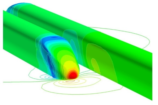 我们在乘坐高速动车组列车时有过这样的体验:原本平稳运行的列车,在对面列车疾驰而过时伴随着一声呼啸发生了短暂而较强的横向晃动。这种横向晃动就是由列车的交会压力波所引起的。列车会车时,相对运动的列车车头对空气形成挤压,便会在列车交会内侧的侧壁上产生交替的高压区和低压区。列车速度越高,会车产生的压力波强度也就越大。两列车相向交会运行时产生的会车压力波作用在车体上会对列车侧壁和侧窗强度、列车运行稳定性和旅客乘坐舒适性产生不利影响,甚至可能产生运行安全问题,如车体侧窗破碎、车辆蛇形运动、轮缘与道轨因侧向冲击造成磨损等。我国铁路客运提速至160公里/小时,就曾多次发生会车引起的列车侧窗玻璃破碎事故。如今列车的运行速度都在200公里/小时以上甚至是350公里/小时,会车压力波的变化幅值和最大正、负压力极值都会急剧增大,有可能带来更大的负面效应。在列车气动外形设计方面,加长列车流线型头部长度,采用扁宽型头型,可以有效减小交会压力波幅值。