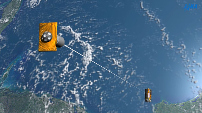~其实,目前还没有这种操作,但是相信随着空间碎片清理问题的日益严峻,空间碎片离轨会逼着人类出现这样的操作~~~~~