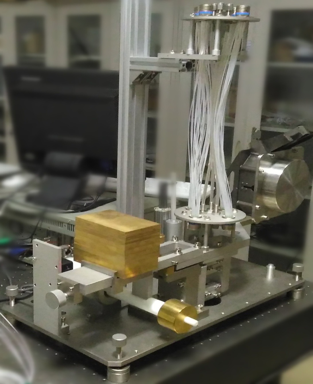 这个台架实际上是一个非常精密的力学系统,它本质上能做到在重量很重的台架上测到非常小的位移,因为这个台架非常灵敏,周围人的走动都会影响到台架的稳定性。那么科学家必须为其增加一个阻尼系统,让这个台架在工作情况下要迅速停下来,以便进行下一次实验。上面没有阻尼的话,它可以在空气中摆动大约半个小时才能够停下来,但是如果加了阻尼,大约就几秒钟就可以停下来。