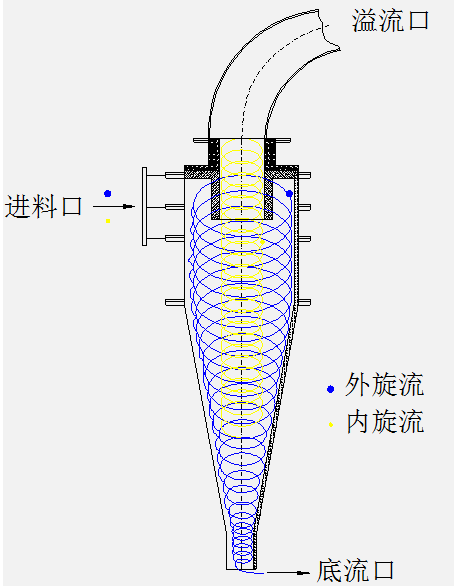 以油水混合物离心分离法为例,在管道式离心分离器中,油水产生高速旋流,由于油和水之间存在密度差异,各相产生不同的离心力,重量大的水相在外侧,相对重量小的油相在管道中心,由于内部压力场的作用,分别从不同的溢流口流出,实现分离。