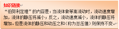 飞机所需的升力主要是靠它的一对大翅膀产生的,这里就要求机翼有特别的形状。如果我们来看机翼的横断面,它的上侧面是凸起的,而下侧面是平直的(甚至可能是凹进的)。这样,当速度为V的气流通过飞机机翼时(它相当于飞机在大气中以速度V飞行),由于机翼上侧空气流动过的截面积比下侧的要小些,所以机翼上侧的空气流动得比下侧的更快些。根据伯努利定理,机翼上侧的空气压力就会比下侧的小,于是上下侧面压力差就形成支撑机翼向上的升力Y。所以,有人开玩笑说:飞机不是被“托举”而是被“压挤”上天的!