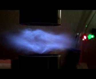 这里再对比一下微重力环境和常重力环境下的预混气体对冲火焰的不同形态,图5和图6分别给出两种条件下的火焰图像。在地面实验中,常重力下的对冲预混火焰边缘向上卷曲、翘起。相比而言,微重力环境下对冲预混火焰更为平坦、对称。两种环境下的这种差异,在实际工程中有着应用的。仅就燃烧而言,当太空环境中发生火灾时,不能再采取与地面火灾相同的处理方式。