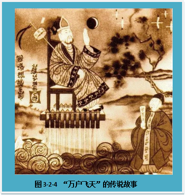 其实,万户”并不是人名,而是明朝初年的一个官吏名称,可以掌管民兵一万户。这位世界航天第一人的真名叫陶广义,他精于火器,曾经设计出杀伤力很大的火炮。在元末明初时期,这位火器神跟随明太祖朱元璋打天下,由于军功显赫而得到了“万户”的官职。陶广义并不贪恋朝廷赐予的官爵,他一直痴迷于火药、火器的研究,并大胆地进行了火箭载人飞行的实验:他在一个座椅的下方安装了47个大火箭(提供上升的动力),把自己捆绑在椅子上,双手各持一个大风筝(控制飞行的方向),然后命令仆人将火箭点燃。陶广义随着座椅缓缓升起来了!突然间,火药爆炸了,座椅迅速失控并变成了一个大火球,陶广义被炸得尸骨无存。