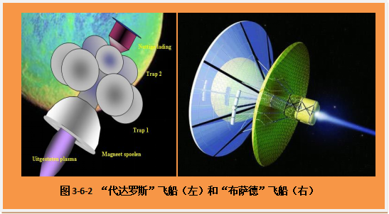 这里就从“代达罗斯计划”谈起。它是英国在1973-1978年间执行的一个研究计划,目标是使用核聚变火箭推进飞船抵达太阳系外的另一个恒星——距地球6光年之远的巴纳德星。按照设计,氘和氦-3组成的混合燃料球由高能电子束在反应室中点燃并爆发,爆发产生的离子气在磁场的约束下以10000千米/秒的速度排出喷管,从而推动飞船前进。代达罗斯火箭有两级,第一级火箭有6个燃料罐,工作2年,把飞船加速到光速的7.1%。第二级火箭有4个燃料罐,工作1.8年,把飞船加速到光速的12%。