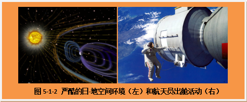太空中存在的宇宙辐射,是威胁载人航天安全的又一个物理因素。它们来自银河系、太阳和地球辐射带,会损坏人体的组织和器官,产生急性或慢性放射病。所以,载人航天器必须能提供一个与地面大气环境相似的人造环境,并能防止宇宙线的照射。但是,航天员出舱活动时就只能直接暴露在太空的辐射环境中,所以他们必须穿戴精细设计的航天服。